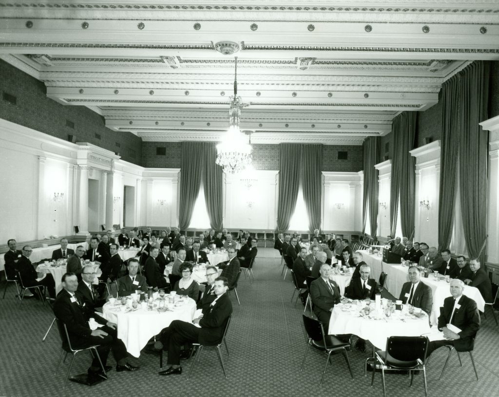 Photograph of Farm Leadership Awards winners at seminar, Fort Garry, Winnipeg, 1966.
