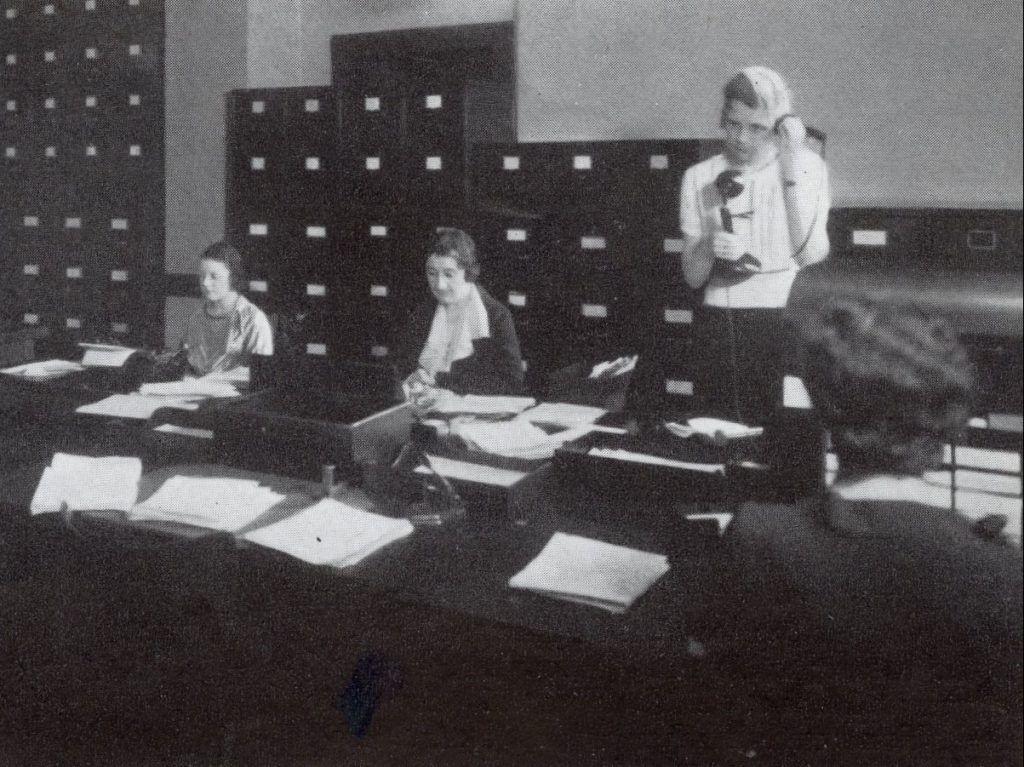 As women continued to join the bank in the early-20th century, some departments, such as the Head Office Filing Department, became staffed entirely by women. The department, known as “the bank’s central reservoir of information,” was responsible for storing and indexing memos and correspondence from nearly all the bank’s departments.