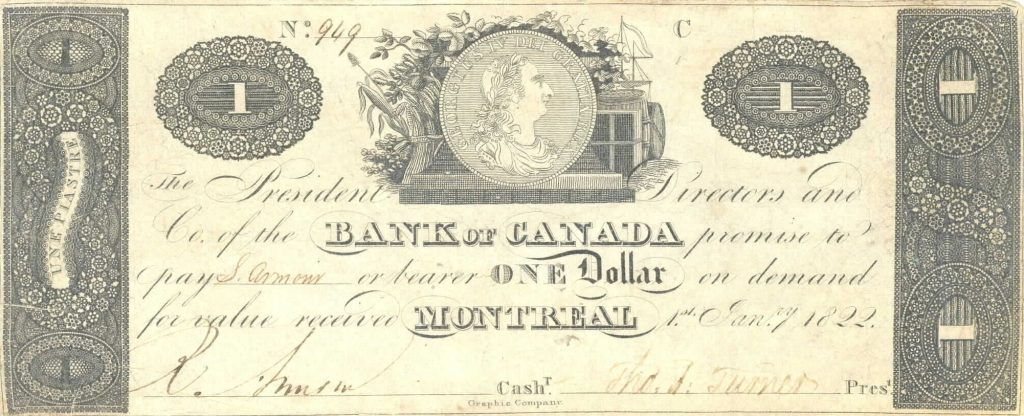 Bank of Canada, Montreal, $1 note, 1 January 1822.