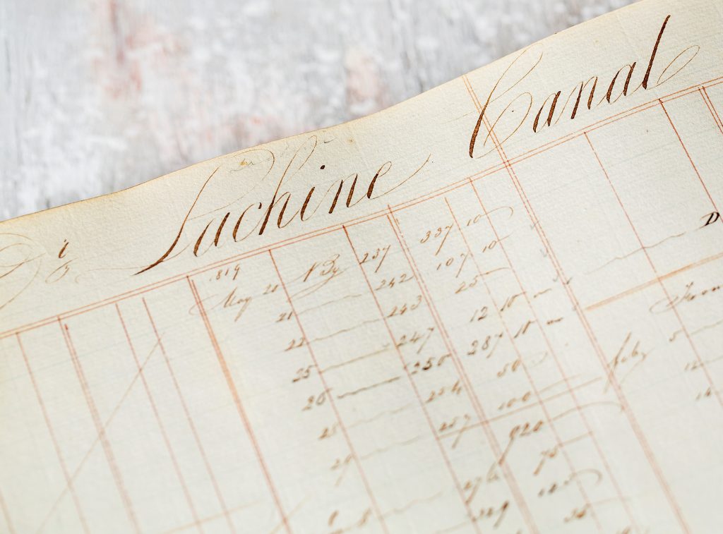 Lachine Canal entry in Bytown (Ottawa) Ledger Book, 1825.