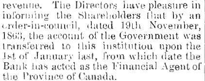 Extract from BMO’s Annual Report announcing the transfer of accounts, 1864.