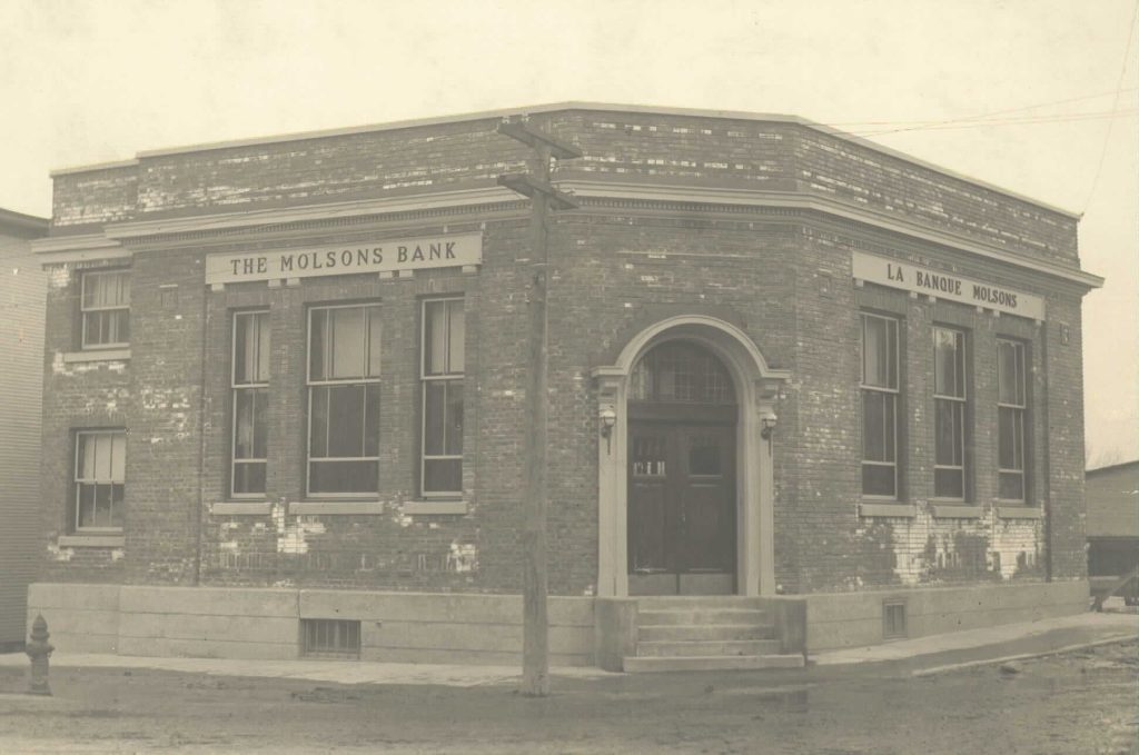 Photograph of Molson’s Bank Bedford branch, Quebec, c. 1922.