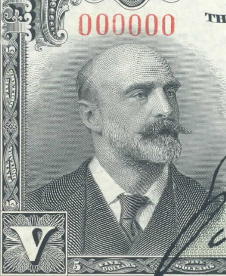 Le premier 6 est fait d’une encre brillante et d’apparence plus récente que les autres chiffres, et il paraît être d’une forme légèrement différente que le dernier 6, et ne correspond pas vraiment au reste des chiffres. De plus, l’ombre qui entoure le portrait de l’ancien directeur général, qui, sur le billet avec lequel nous avons comparé celui-ci, s’étend autour des chiffres, sur ce billet-ci semble avoir été effacée. Le 6 en question, lorsqu’on l’examine à l’aide d’une loupe, paraît avoir été estampillé ou pressé sur le billet. »